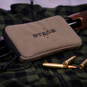Sidekick – Silent, weather-resistant pouch for ammo, charge tubes, and small must-haves — attaches to the Trak Pack’s load straps for a streamlined one-piece setup.